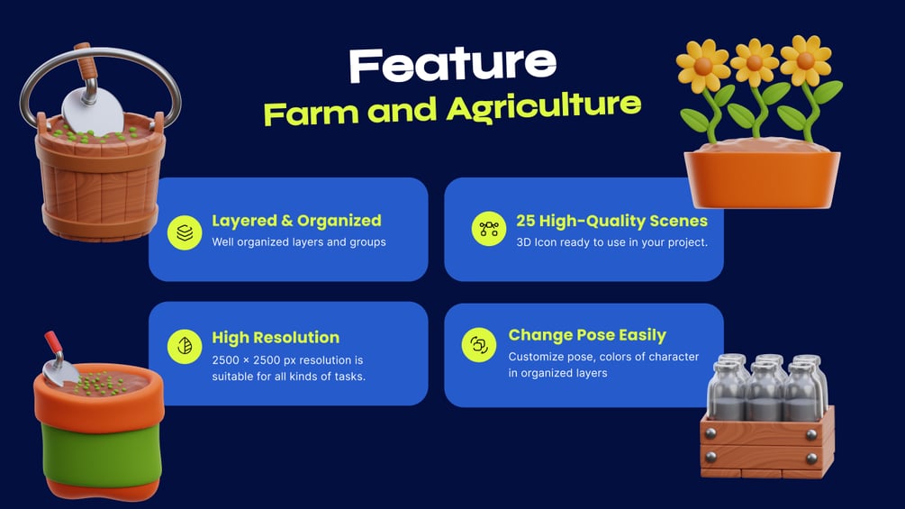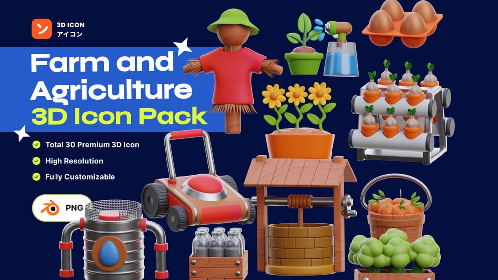 - 30 Total Premium 3D Icons: A versatile set covering essential farming and gardening items.