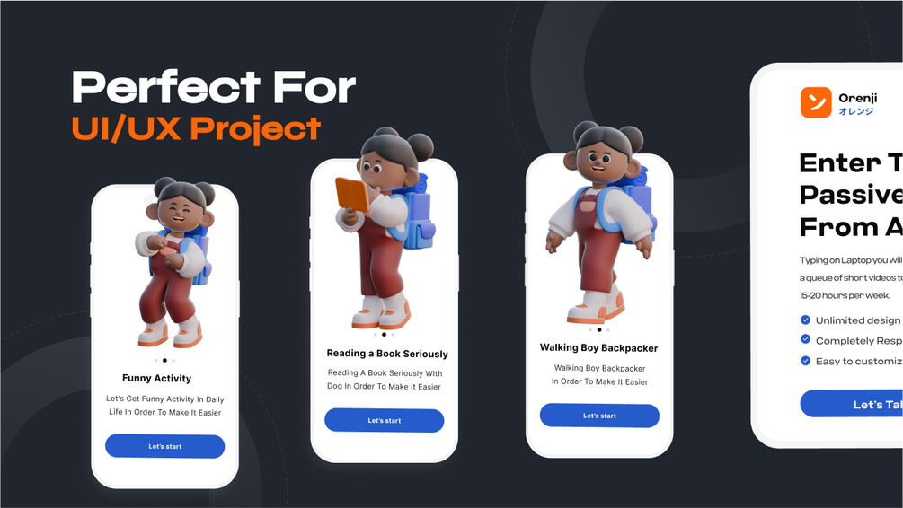 A stylish and unique collection of 50 different poses each character and pre-made illustrations. Great for designing a website, an app, or a modern presentation. Enhance your designs with 3D Assets.