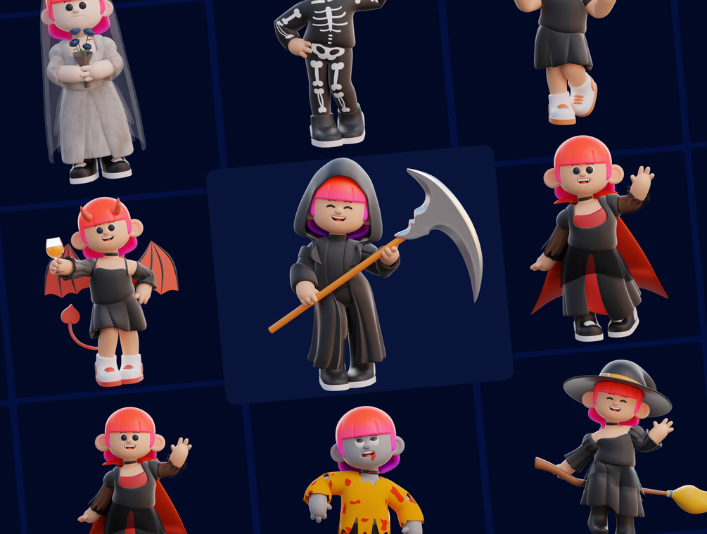 Halloween and horror 3D character is high-quality and made for various purposes such as presentations, social media posts, or your UI/UX designs to be attractive, colorful, and full of personality. You will get 20 premium 3D for any Halloween and horror niche. with various poses and scenes. Perfect for UI/UX design, presentation, advertising, and many more.