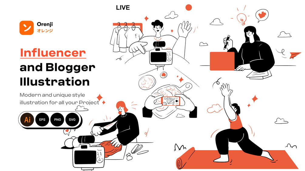 Influencer and blogger illustration pack