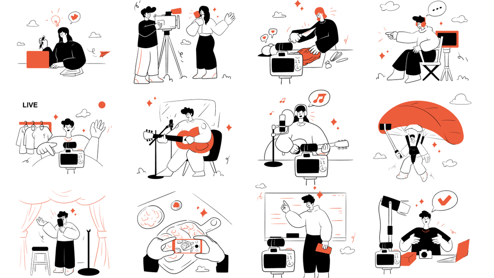 Influencer and blogger illustration is a pack of custom illustrations suitable for the fintech niche. Made fully-layered and separated vector objects. Perfect for UI/UX design, presentation, advertising, and many more.