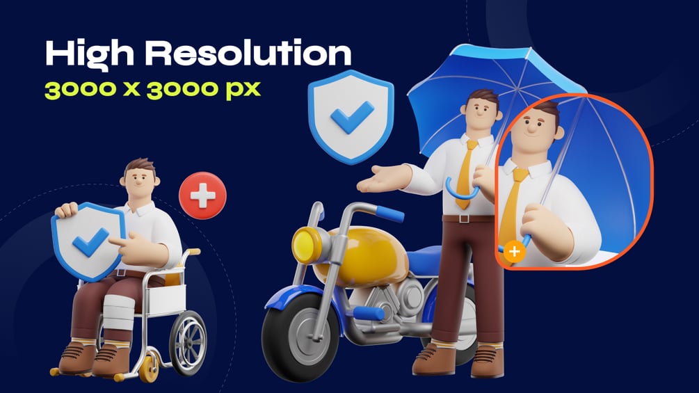 Bring your insurance, finance, or protection-based projects to life with this premium 3D character icon pack! This collection features 25 high-resolution, fully customizable 3D icons, perfect for creating engaging websites, mobile apps, landing pages, and presentations.