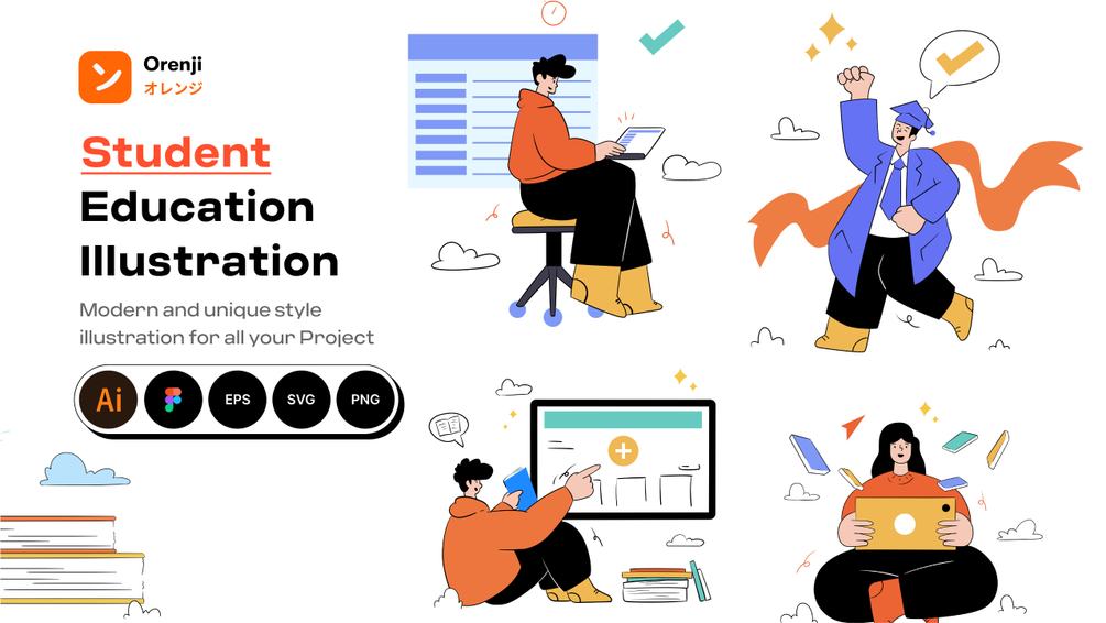 Create a more engaging and modern learning experience with our School & Education 2D Illustration Pack! This comprehensive vector illustration collection is designed with a clean, friendly, and professional flat design style. It's the ideal solution for EdTech platforms, school websites, online course materials, and all your educational visual needs.